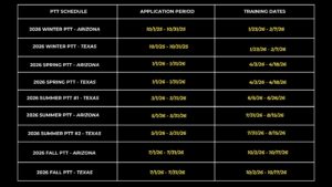 Applications for each PTT will be open for 30 days, roughly 90 days before each training session begins.